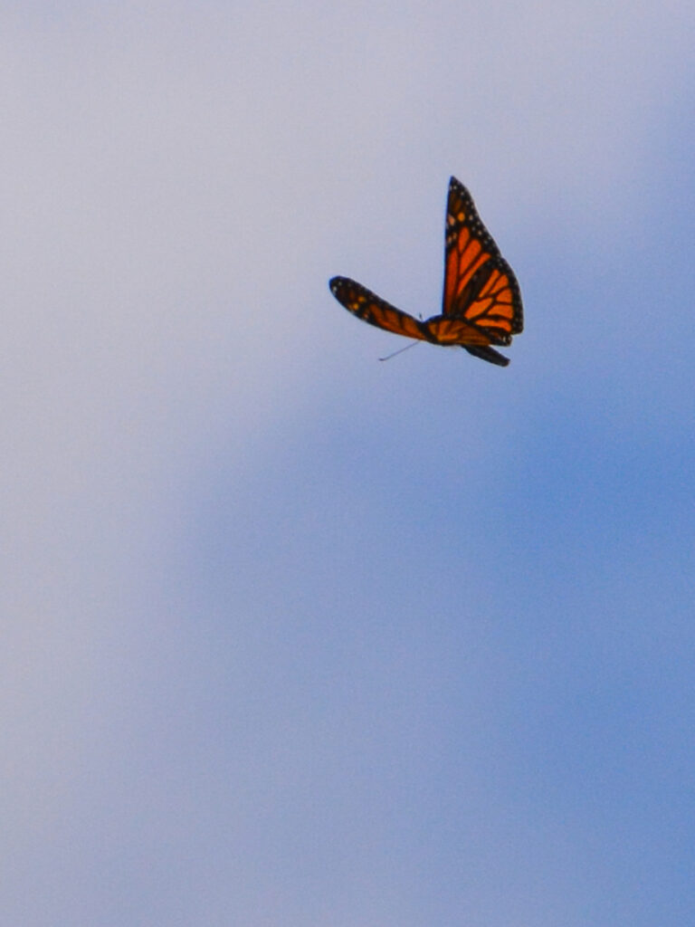 A plant that is the preferred host for monarch butterflies is the common milkweed (Asclepias syriaca). My neighbor planted some near the property line between our houses a couple years ago, and now I have some in my yard, too. I don’t know whether they spread by seed or rhizomes (underground running roots) or a combination of both, but they have formed into a welcoming circle in my yard. I even transplanted a couple of them to be near the pollinator garden I planted in the spring of 2025.