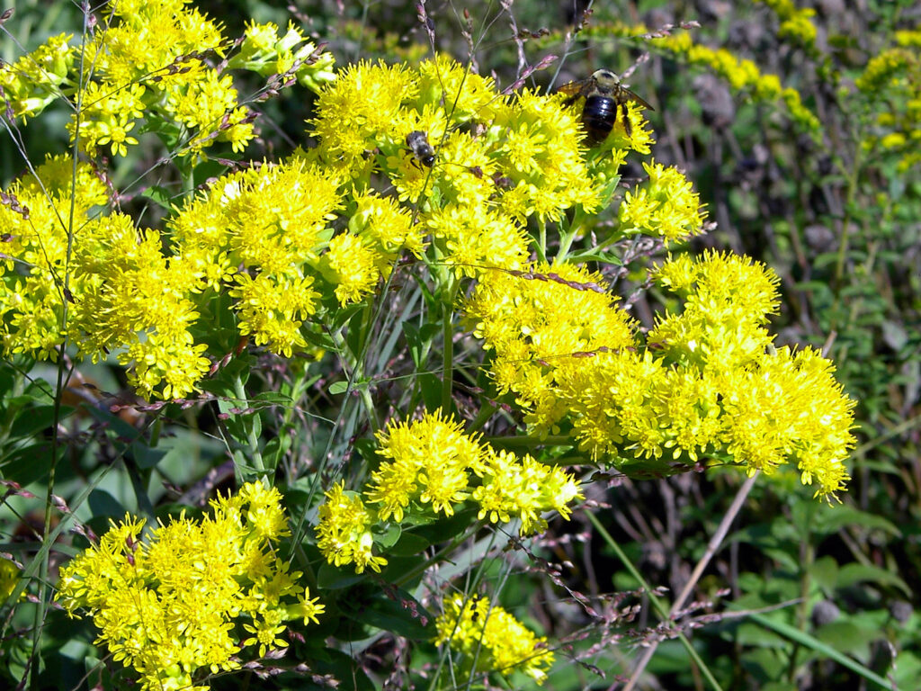 Many bees are specialists, which means they only seek out the pollen of specific plants. The bee population has declined by more than 30% just over the past fifteen years due to pesticides, disease, and loss of habitat and the native plants they need for their survival. Want to try to reverse or at least slow down that decline?Plant Stiff Leaf Goldenrod (Solidago rigida) or Blue Wood Aster (Symphyotrichum cordifolium), which each can serve as host to more than 100 species of caterpillars and, together, more than 50 species of bees.